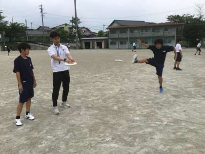 5/27(火)授業の様子14 公開日 2025/05/27 更新日 2025/05/27 輝く朝中生! 17・18学級の体育です。1年生は、アルティメットに取り組み始めました。ディスクを真っ直ぐ飛ばすコツを探っています。 1年