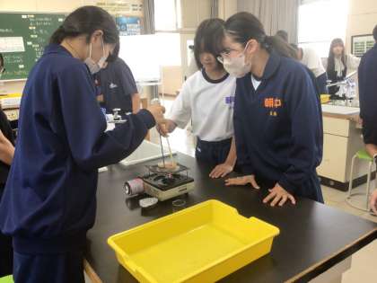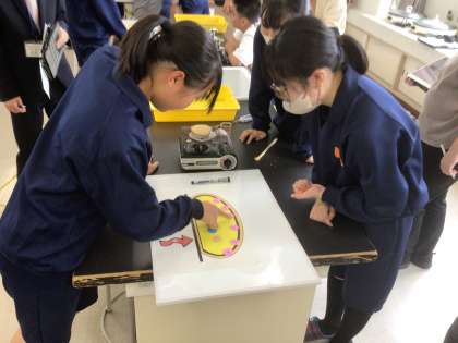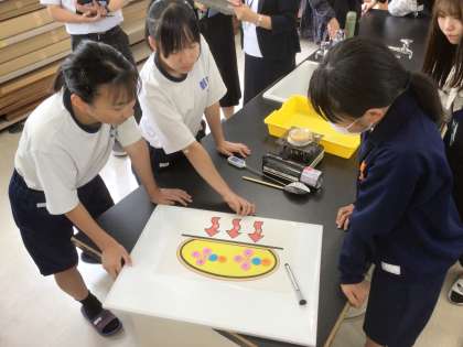 21学級の理科です。ホットケーキがふっくら膨らむ理由を科学的に解き明かしています。(教員研修のため、複数の教員が授業を参観しています。)