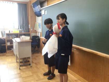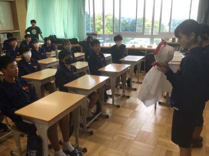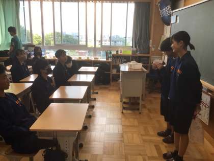 5/30(金)修学旅行に向けて3 公開日 2025/05/30 更新日 2025/05/30 輝く朝中生! 2年生の学級委員が集まり、クラスで作成した「てるてる坊主」を3年生に届けます。晴れますように。写真は33学級です。 2年 3年
