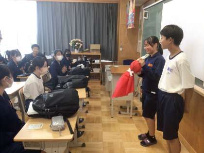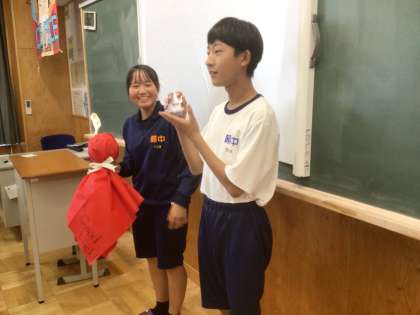 5/30(金)修学旅行に向けて4 公開日 2025/05/30 更新日 2025/05/30 輝く朝中生! 2年生の学級委員が集まり、クラスで作成した「てるてる坊主」を3年生に届けます。晴れますように。写真は31学級です。 2年 3年