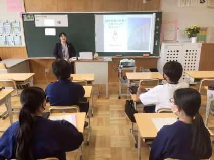 5/30(金)働く人に学ぶ会13 公開日 2025/05/30 更新日 2025/05/30 輝く朝中生! 2年生は「働く」ということについて学ぶために、講師を招いて講演会を開催しました。「豊田信用金庫」様です。 2年