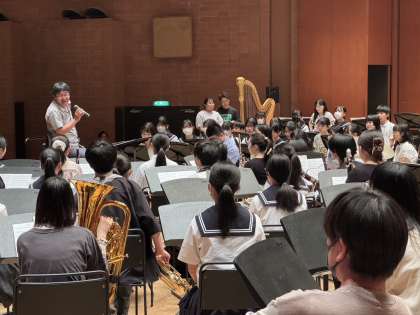 6/21(土)部活動の様子1 公開日 2025/06/21 更新日 2025/06/21 輝く朝中生! 吹奏楽部です。 愛知県立芸術大学特別授業見学会です。実際に舞台に上げてもらい、間近で音を体感しています。 部活動