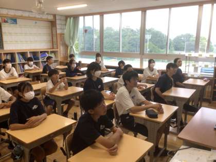 本日は環境美化委員企画の環境美化クイズを行っています。写真は24学級です。