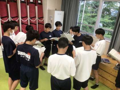 19学級の音楽です。学年合唱の曲をパート練習しています。