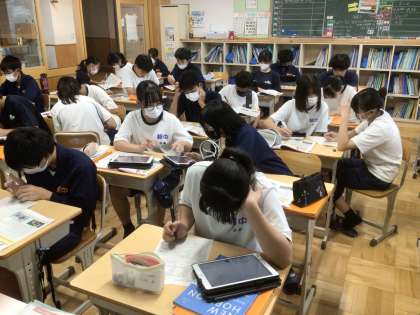 31学級の英語です。英文を読みながら、絶滅危惧種の動物のためにできることを考えています。