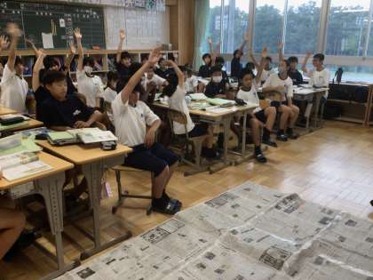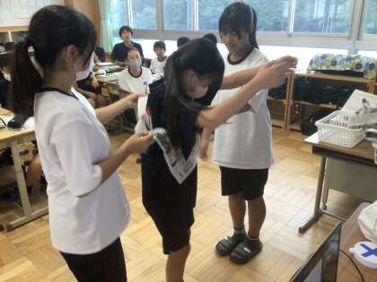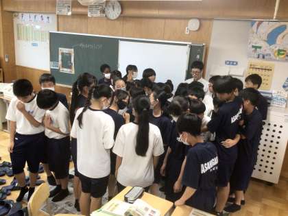 6/26(木)授業の様子7 公開日 2025/06/26 更新日 2025/06/26 輝く朝中生! 16学級の社会です。奈良時代の学習のために、大仏の大きさを実感できる活動をしています。とても積極的に授業に参加しています。 1年