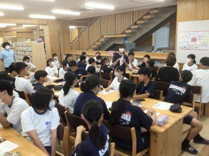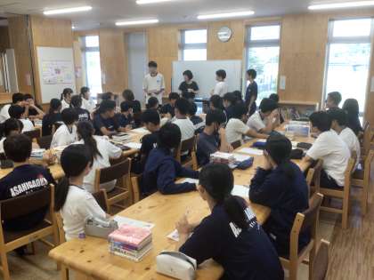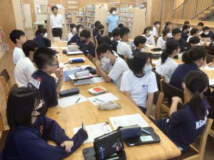 図書委員会です。図書委員会企画の短学活の内容を考えています。