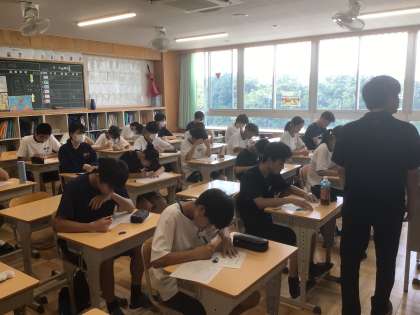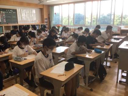 7/1(火)ABテスト3 公開日 2025/07/01 更新日 2025/07/01 輝く朝中生! 朝の時間にABテスト(Asahigaoka Basicテスト)を実施しています。写真は38・37・36学級です。 3年