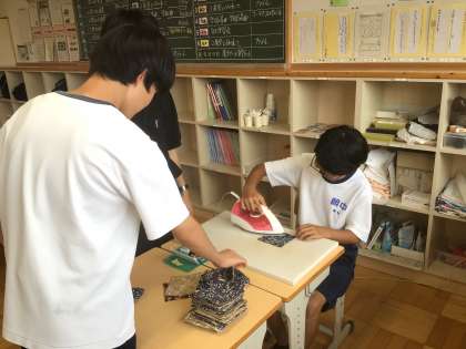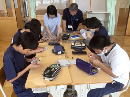 1・2・3・4・5・6学級です。オリジナルのコースターを作っています。