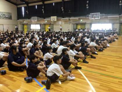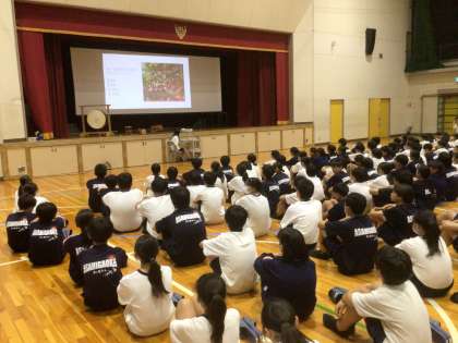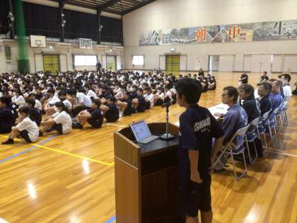 1年生は、挙母祭りを学ぶ会を行っています。合唱コミュニティ委員が会を進行しています。挙母祭りに携わる講師の方が参加してくださっています。