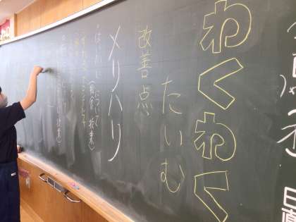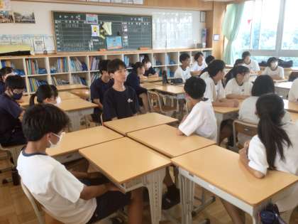 本日は、わくわくタイム(話し合い活動)があります。本日のテーマは「◯◯学級 夏休みまでのがんばる宣言」です。36学級です。3年生は司会も生徒が行い、話し合いを進めています。