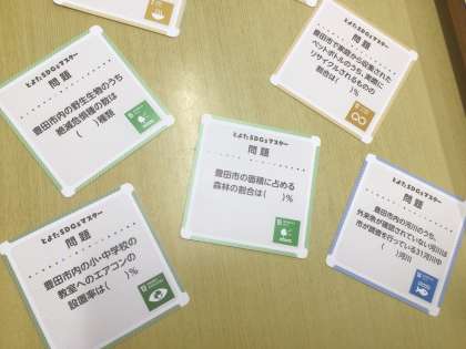 13学級です。豊田市役所未来都市推進課の協力のもと、講師を招いて「とよたSDGsマスター授業」を実施しています。本日1年生全クラスで実施しています。