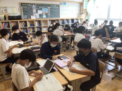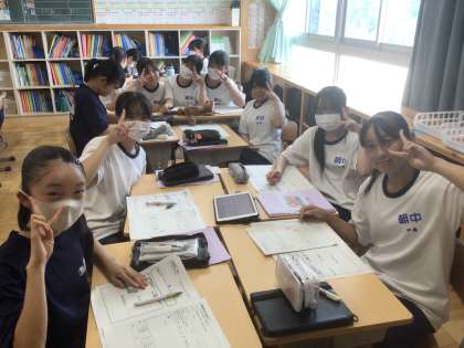 7/7(月)職場体験に向けて6 公開日 2025/07/07 更新日 2025/07/07 輝く朝中生! 2年生です。製造・福祉・美容関係の職場で体験活動をする生徒が集まり、追究テーマを考えています。 2年