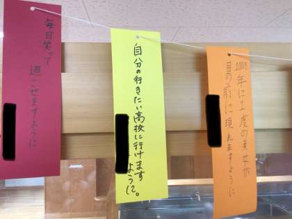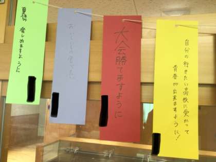 7/7(月)七夕飾り2 公開日 2025/07/07 更新日 2025/07/07 輝く朝中生! 本日は七夕です。3年生の教室にも願いごとが書かれた短冊が飾られていました。願いごとが叶いますように。 3年
