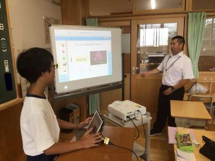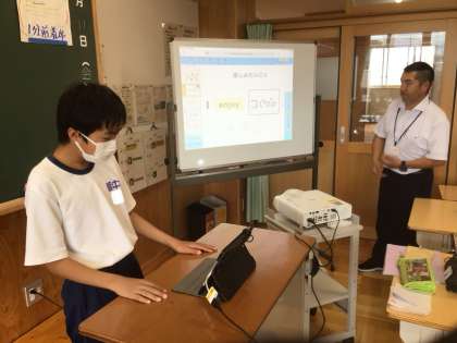7/11(金)授業の様子4 公開日 2025/07/11 更新日 2025/07/11 輝く朝中生! 1・2・3・4・5・6学級の英語です。ALTの先生に夏休みの予定を英語で伝えています。 特別支援学級