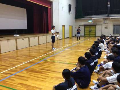 7/18(金)学年集会4 公開日 2025/07/18 更新日 2025/07/18 輝く朝中生! 2年生の学年集会です。夏休みの生活についての話を聞いたり、ABテストの満点者の表彰を行ったりしました。表彰の代表者からは、どのようにテストに向けて取り組んだかを伝えました。 2年