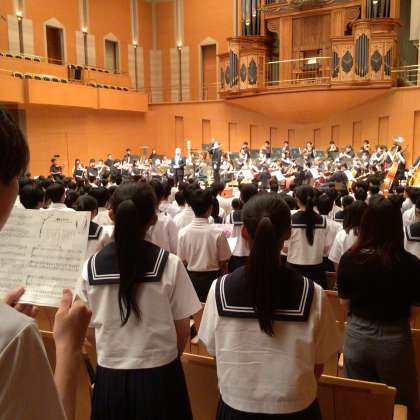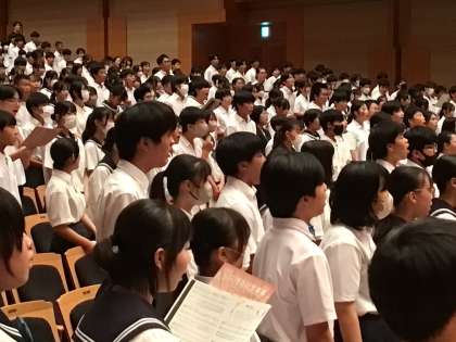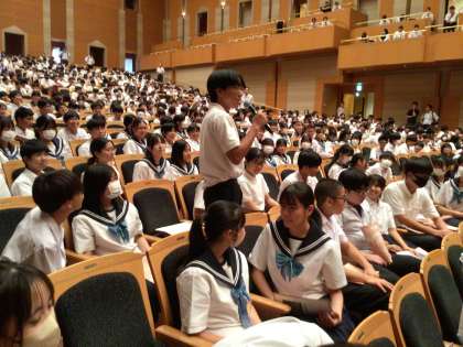 本日、3年生は「心に残る記念事業」で、豊田参合館のコンサートホールを訪れています。