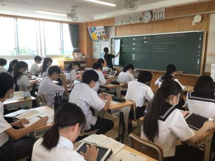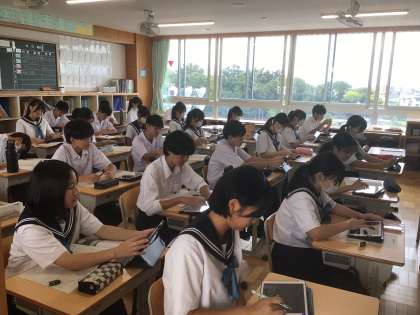 35学級の道徳です。「二通の手紙」を読んで、自分の思いを「心の数直線」に表して考えています。