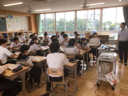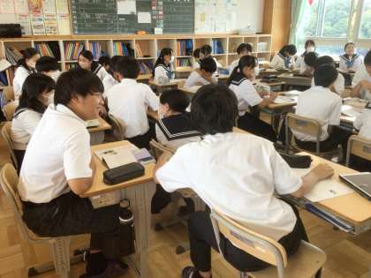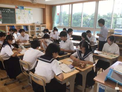 27学級の道徳です。「五月の風」を読んで、登場人物の心情を考えています。