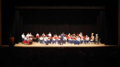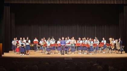 吹奏楽部です。市民文化会館で、小坂自治区敬老会にゲスト出演し、演奏を披露しました。