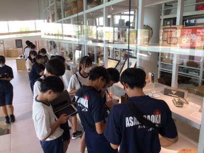 常設展を見学しながら、気づいたことは学習用タブレットに記録します。