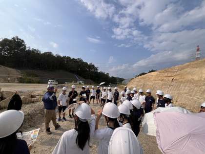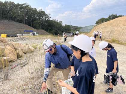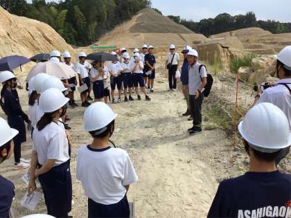 田籾鉱山で地層を見学しています。