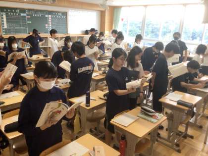 34学級の国語です。「故郷」を音読しています。