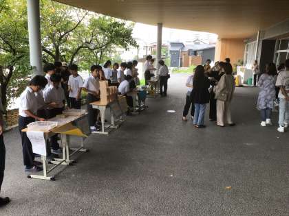 9/19(金)学校公開4 公開日 2025/09/19 更新日 2025/09/19 輝く朝中生! 1・2・3・4・5・6学級です。学校公開日に合わせて、昇降口前で学校バザーをしています。これまで作ってきた商品を販売しています。 特別支援学級