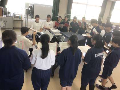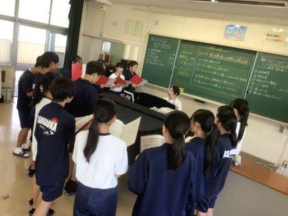 22学級の音楽です。クラスの合唱曲「時を越えて」を練習しています。