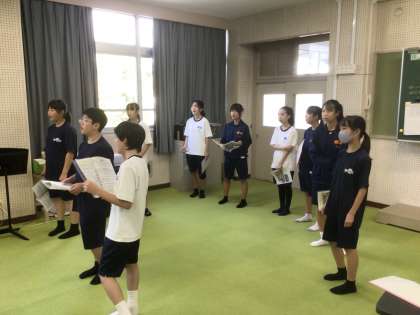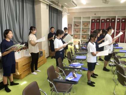 14学級の音楽です。クラスの合唱曲「怪獣のバラード」を練習しています。