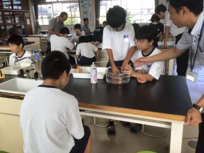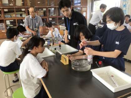 1・2・3・4・5・6学級の理科です。水上置換法で気体を集めて調べます。