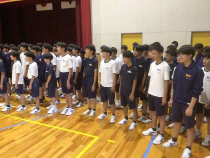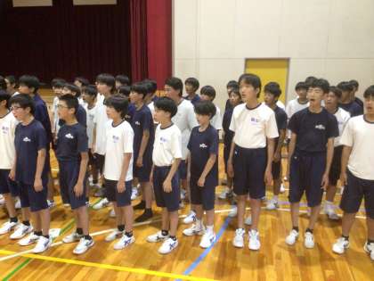 3年生は、学年合唱「大地讃頌」の練習をしています。これまで音楽の授業で練習してきた8クラスの歌声が重なり合います。