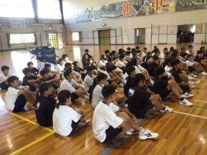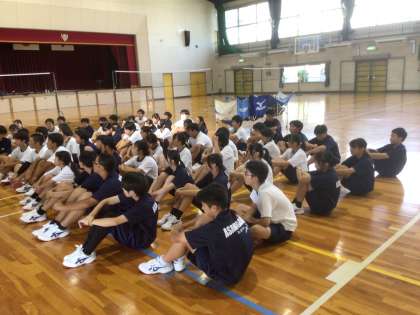 9/30(火)授業の様子1 公開日 2025/09/30 更新日 2025/09/30 輝く朝中生! 17・18学級の体育です。バレーボールに取り組んでいます。授業のはじめに、カバーする動きを全体で確認しています。 1年