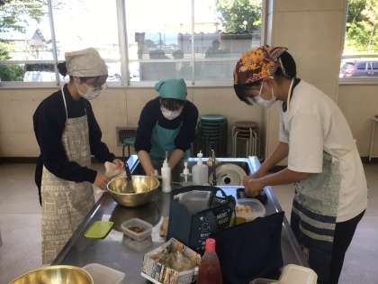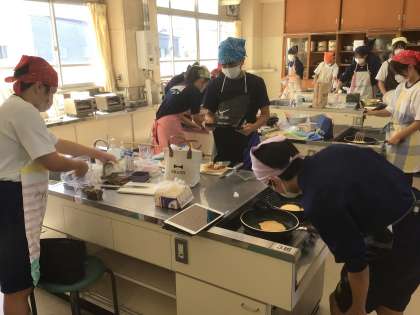 35学級の家庭科です。子ども向けのおやつを作っています。