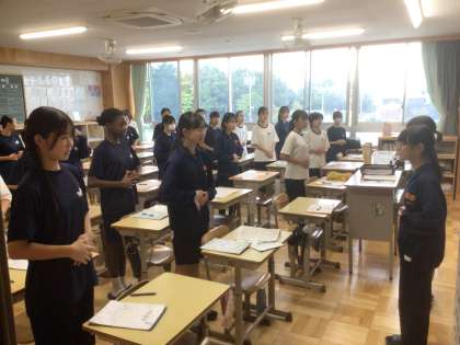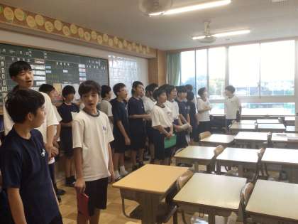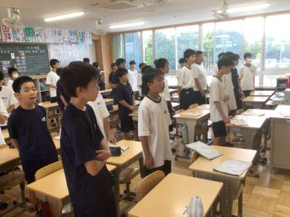1年生は発声練習をしています。