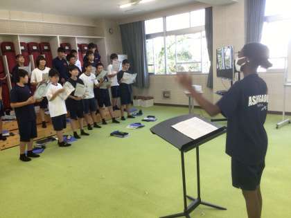 16学級の音楽です。合唱曲「地球星歌」を歌っています。