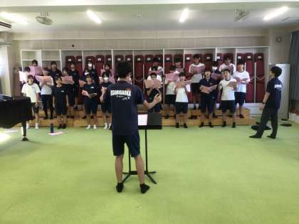 37学級です。合唱曲「信じる」を歌っています。