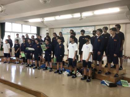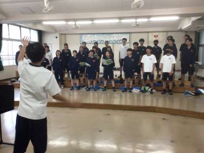 32学級の音楽です。合唱曲「群青」を歌っています。