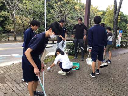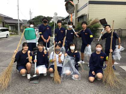 朝中生が、本日の挙母祭りで使用された紙吹雪を清掃しています。ボランティアのみなさん、ありがとうございました。