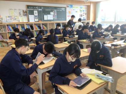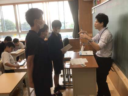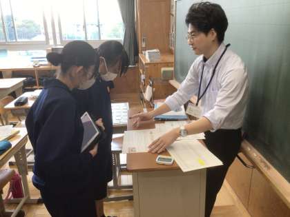 10/21(火)授業の様子1 公開日 2025/10/21 更新日 2025/10/21 輝く朝中生! 21学級の英語です。Favorite School LunchをALTの先生に紹介するために、他校の栄養教諭の先生に給食のtriviaを尋ねています。 2年