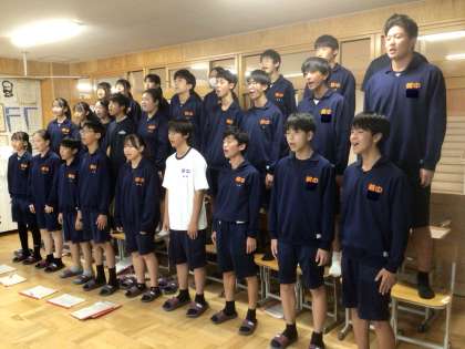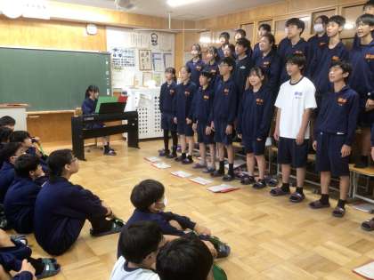 22学級「時を越えて」と12学級「カリブ夢の旅」の歌い合わせです。最初に2年生が歌います。