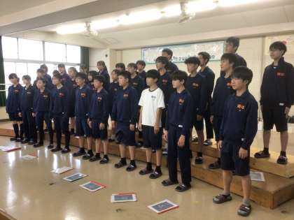28学級の「空駆ける天馬」と31学級「結」の歌い合わせです。最初に2年生が歌います。