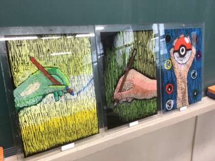 24学級の美術です。「夢をつかむ わたしの手」が完成に近づいてきました。