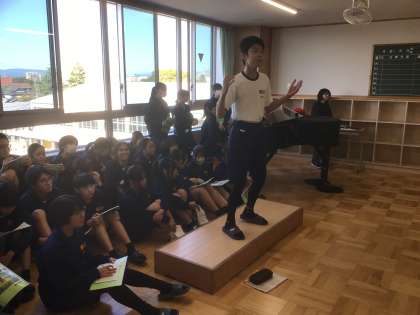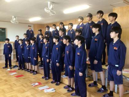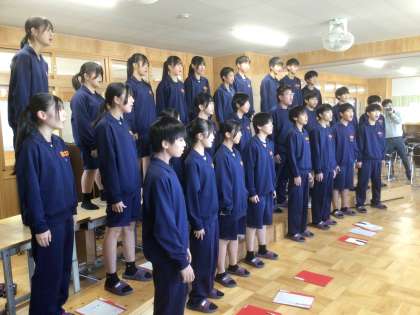 23学級の「輝くために」と32学級の「群青」の歌い合わせです。最初に23学級が歌います。