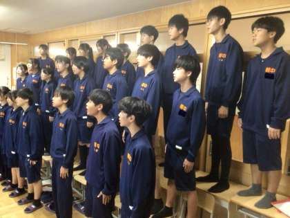 10/24(金)合唱練習5 公開日 2025/10/24 更新日 2025/10/24 輝く朝中生! 13学級の「HEIWAの鐘」と23学級の「輝くために」の歌い合わせです。続いて23学級が歌います。 1年 2年