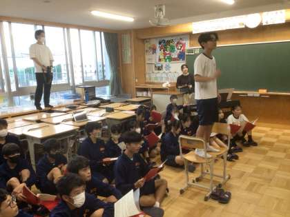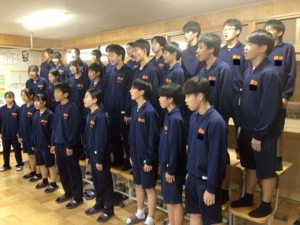 21学級の「ほらね、」と27学級の「海・風・光」の歌い合わせです。続いて27学級が歌います。