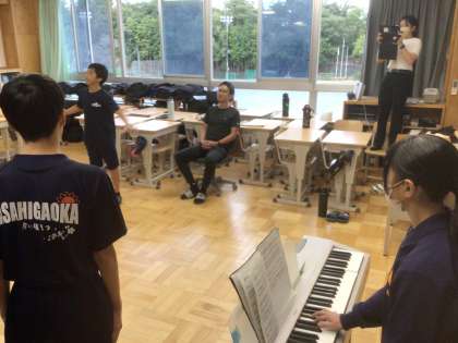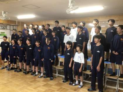 19学級の「明日へ」です。学年主任を教室へ招き、合唱を披露しています。