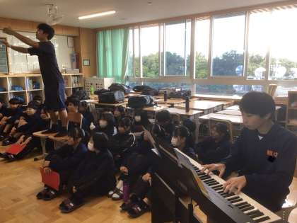 36学級の「友」と26学級の「心の瞳」の歌い合わせです。最初に36学級が歌います。