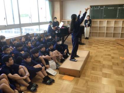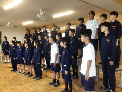 10/27(月)合唱練習6 公開日 2025/10/27 更新日 2025/10/27 輝く朝中生! 18学級の「COSMOS」と16学級の「地球星歌」の歌い合わせです。最初に18学級が歌います。 1年