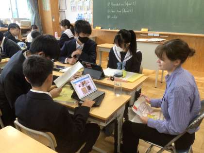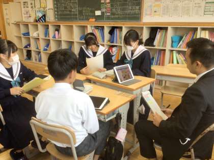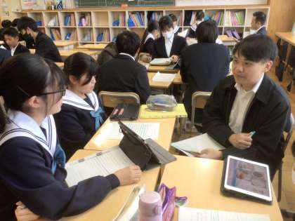 11/5(水)Try English3 公開日 2025/11/06 更新日 2025/11/06 輝く朝中生! 23学級です。市内のALTの先生が英語の授業に参加しています。おすすめの給食を紹介します。 2年